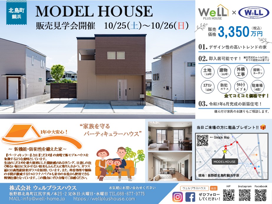 人気の北島町にて10月25日()~10月26日()の2日間でモデルハウスの販売見学会を行います!
